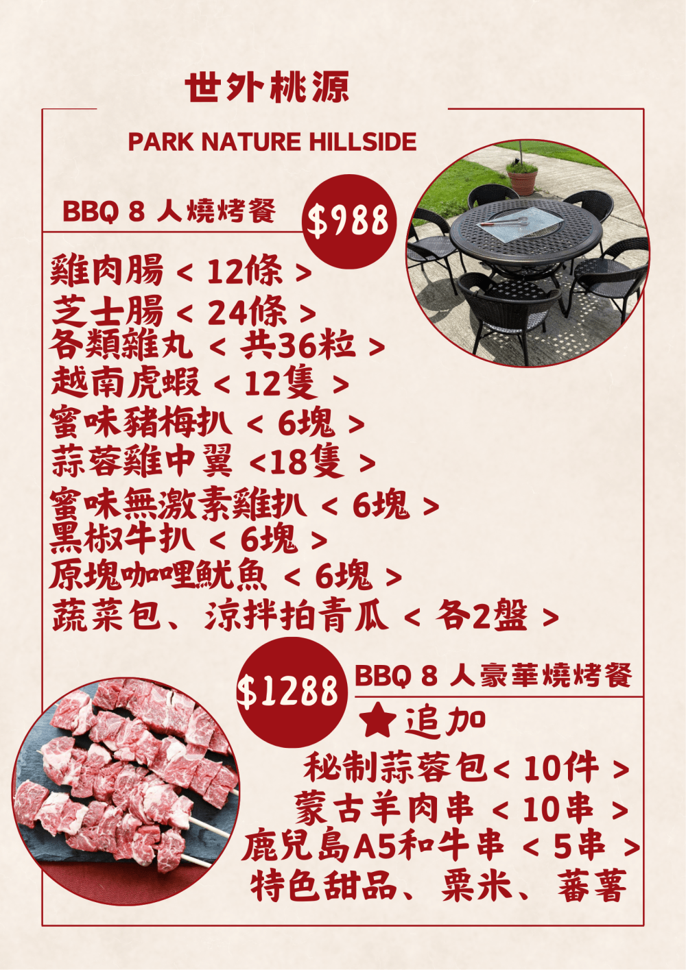 🔥客人亦可以訂購8人燒烤餐 / 8人豪華燒烤餐
